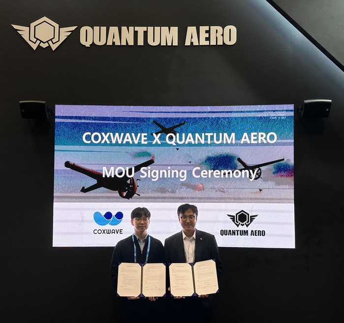 퀀텀에어로는 지난 22일 경기 고양시 킨텍스(KINTEX)에서 열린 ‘2025 서울 국제 항공우주 및 방위산업 전시회(ADEX)’에서 국내 AI 기술 선도 기업 COXWAVE(콕스웨이브)와 ‘국방 AI 기반 첨단 운용 기술 개발을 위한 업무협약(MOU)’을 체결했다고 밝혔다.