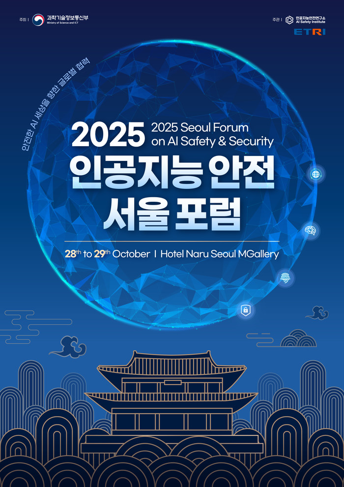 과학기술정보통신부(부총리 겸 과기정통부 장관 배경훈, 이하 ‘과기정통부’)가 주최하고, 한국전자통신연구원 인공지능안전연구소(소장 김명주)가 주관하는 ‘2025 인공지능 안전 서울 포럼(Seoul Forum on AI Safety & Security, 이하 SFASS)’이 10월 28일부터 29일까지 서울 호텔 나루 엠갤러리에서 열린다.
