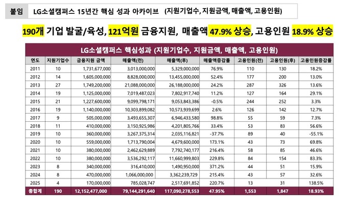 이 성과는 LG화학·LG전자가 지난 15년간 친환경 스타트업 190개 사를 꾸준히 발굴·육성하며 구축한 국내 ESG 생태계의 최대 결실이라는 평가를 받고 있다.