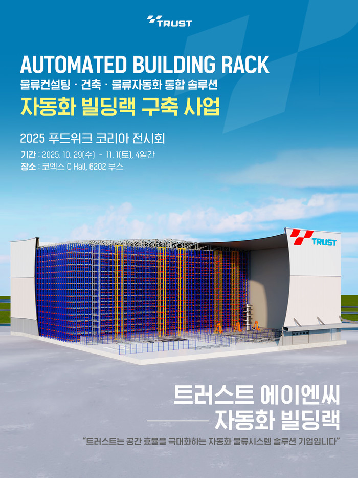 물류 자동화 전문기업 트러스트에이엔씨(Trust A&C, 이하 트러스트)는 오는 10월 29일부터 11월 1일까지 서울 코엑스에서 열리는 ‘2025 푸드위크 코리아(Food Week Korea 2025)’에 참가해 자사의 핵심 기술인 ‘자동화 빌딩랙(Automated Building Rack)’ 모형을 공개한다.