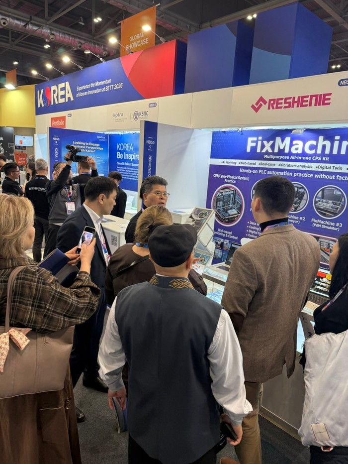 스마트팩토리 전문기업 리쉐니에(대표 이용관)가 지난 1월 영국 런던에서 열린 세계 최대 에듀테크 박람회 ‘Bett Show 2026’에서 스마트제조 교육 전용 플랫폼 ‘FixMachine’ 시리즈 3종을 처음으로 선보였다. 이 플랫폼은 교육과 현장을 연결하는 차세대 기술 인력 양성 솔루션으로 유럽과 아프리카 교육기관들로부터 큰 관심을 받았다.