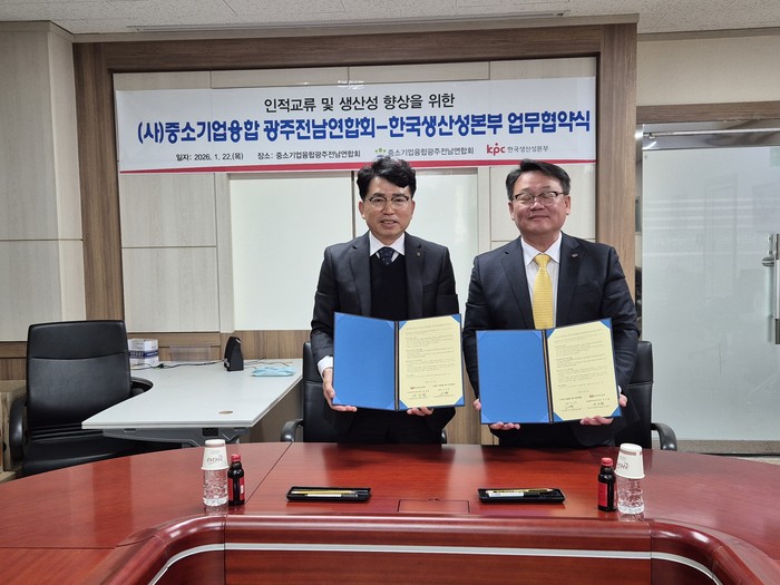 KPC 호남제주지역본부는 지난 22일 (사)중소기업융합 광주전남연합회 회의실에서 (사)중소기업융합 광주전남연합회(회장 임기택, 이하 연합회)와 인적교류 및 기업생산성 향상을 위한 업무협약(MOU)을 체결했다.